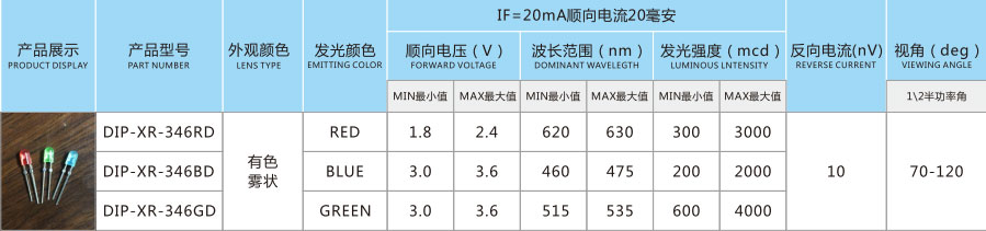 波長(zhǎng) (n.m):R:620-623, G:520-523, B:465-468.